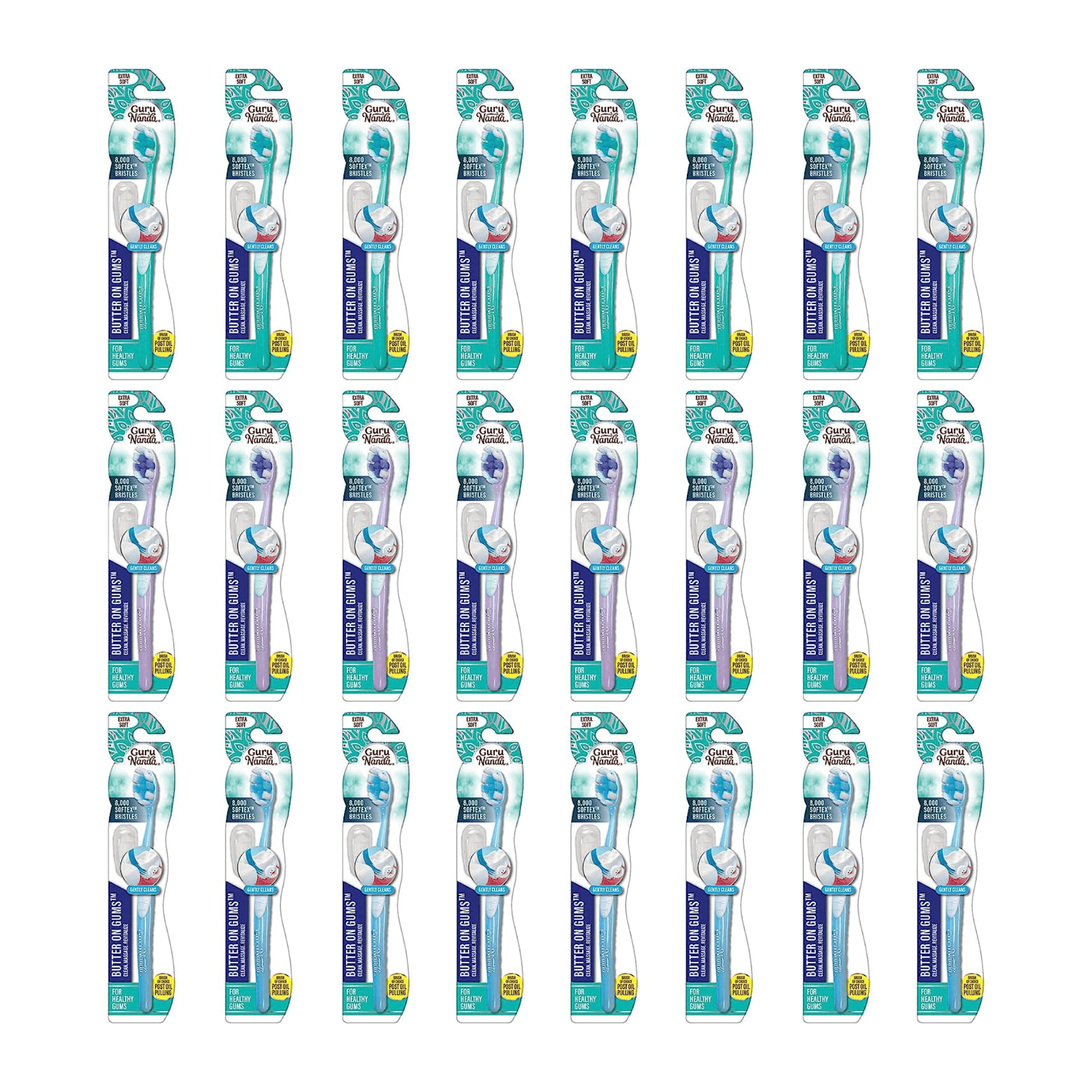 - EXTRA SOFT BRISTLES FOR SENSITIVE GUMS: GuruNanda Butter on Gums Toothbrush (Pack of 24) is made with 8000+ SoftexTM bristles technology, which compromises of ultra-soft bristles, to help reduce receding gums, and is gentle for sensitive teeth.