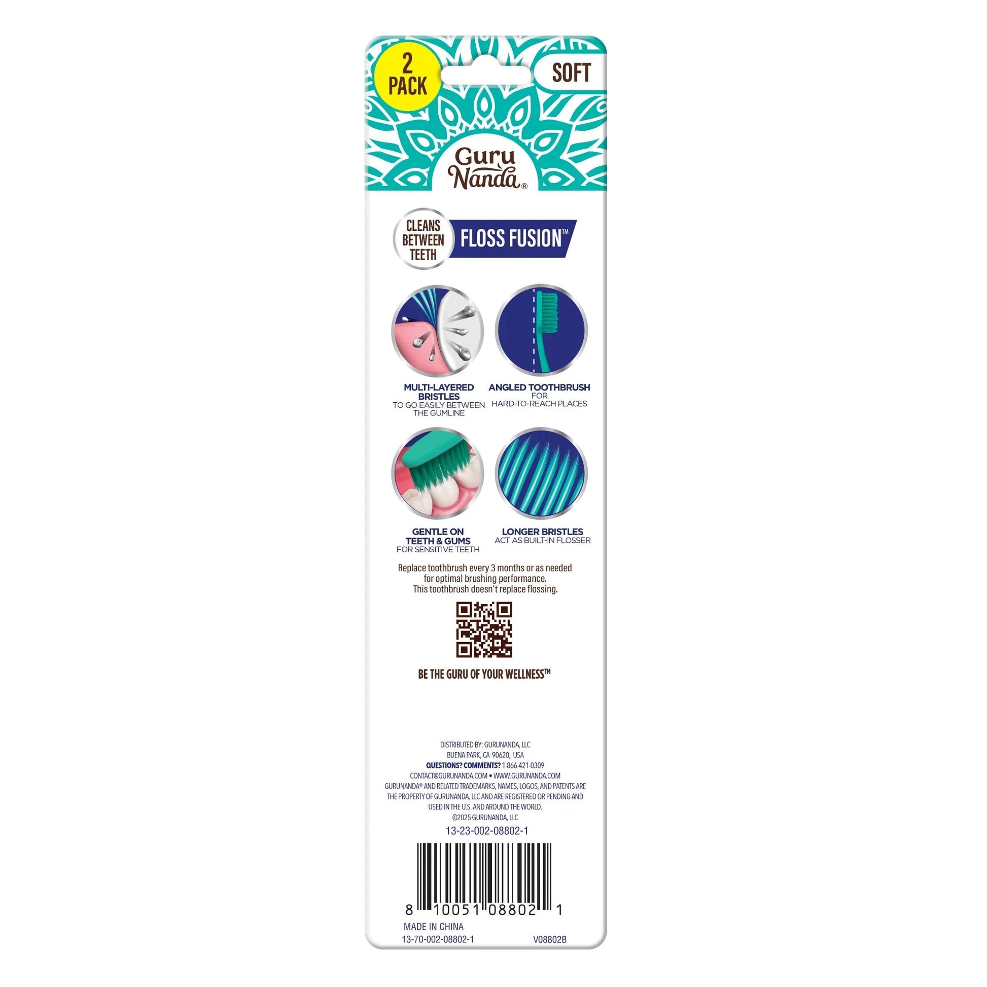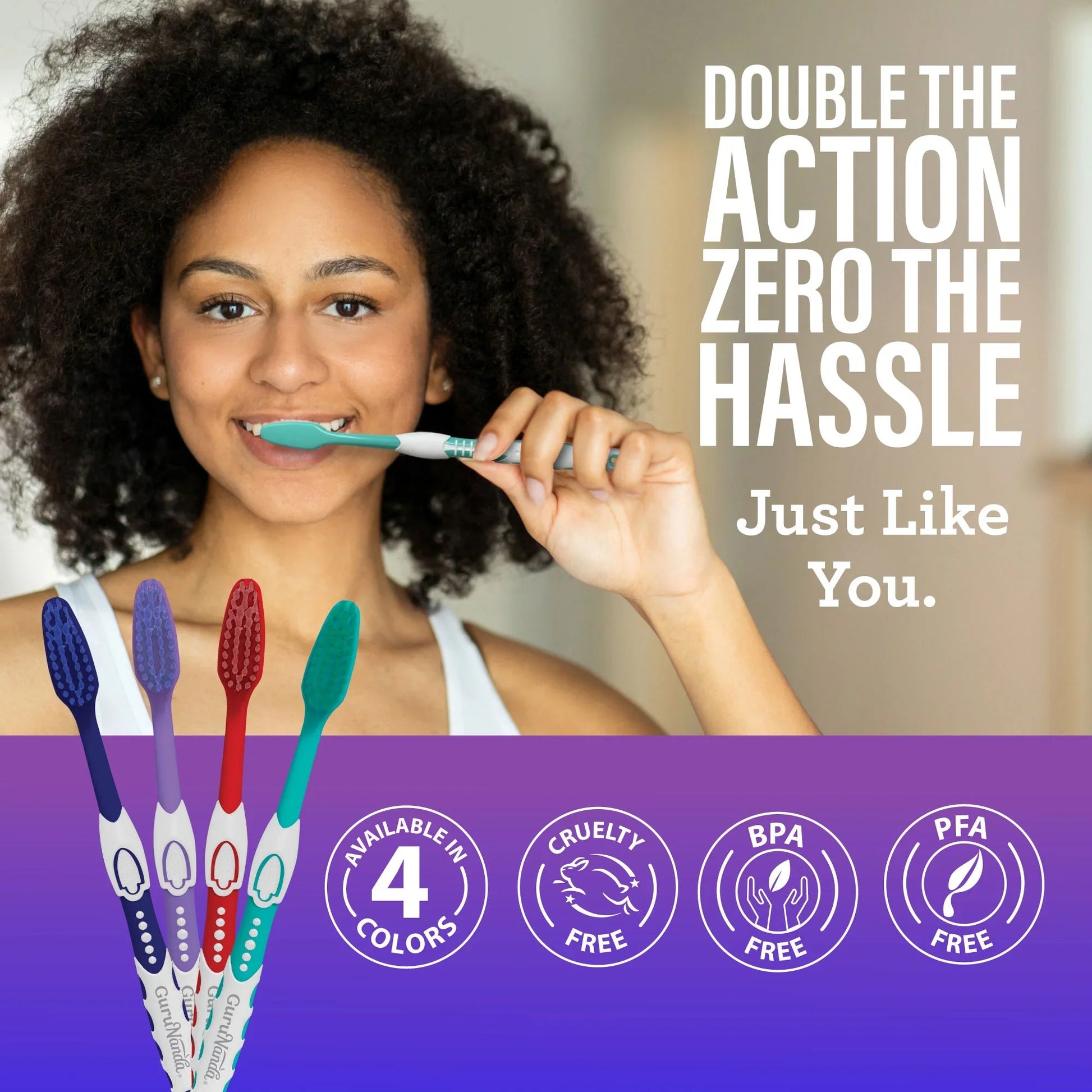 FLOSSING ACTION FOR A DEEPER CLEANING: Experience elevated brushing satisfaction with our GuruNanda Floss Fusion Toothbrushes. Made with tapered-end dual-action bristles, our toothbrush flosses and brushes your teeth with every stroke.