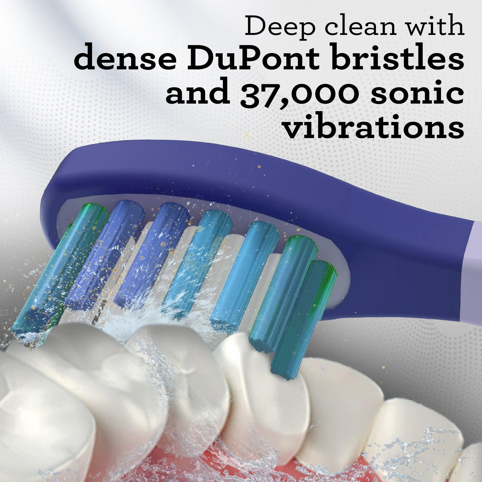DUPONT BRISTLES: Soft-rounded Dupont bristles gently care for gums while effectively removing plaque. Fading indicator bristles signal when it's time to replace the brush head for optimal oral hygiene.