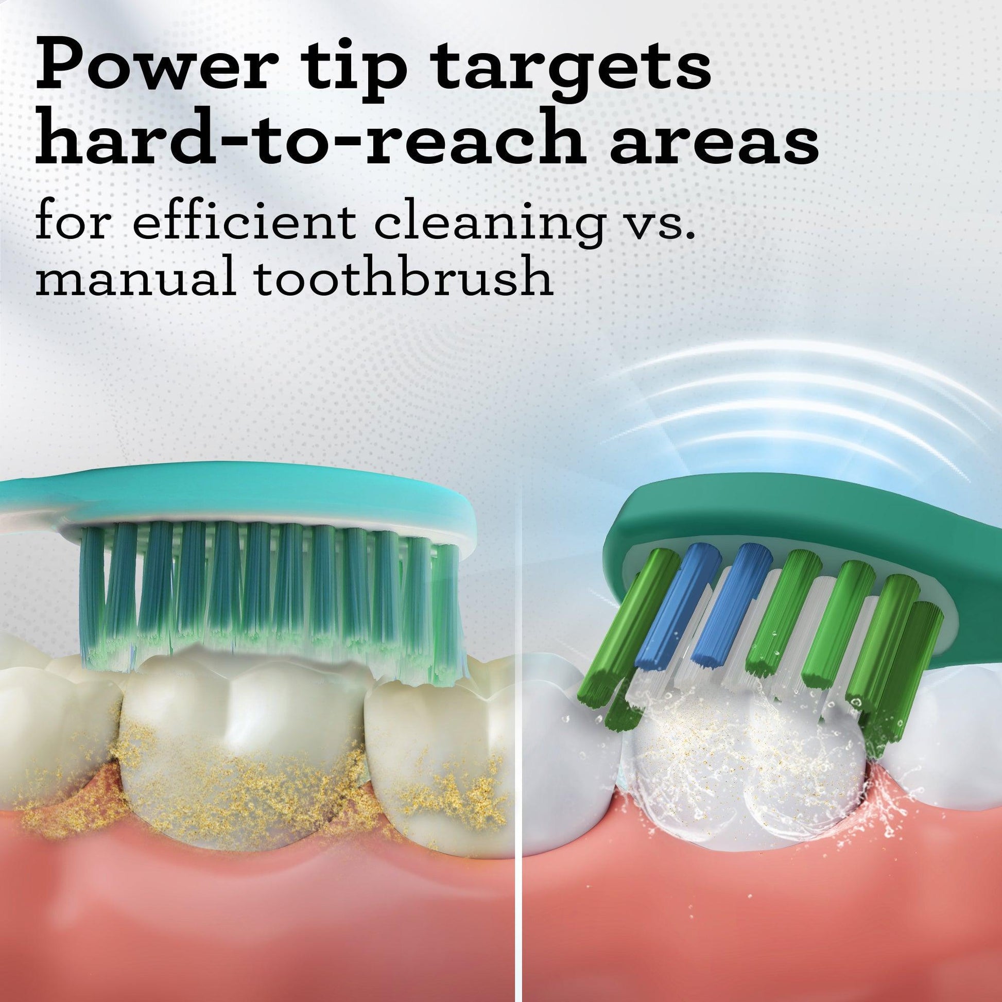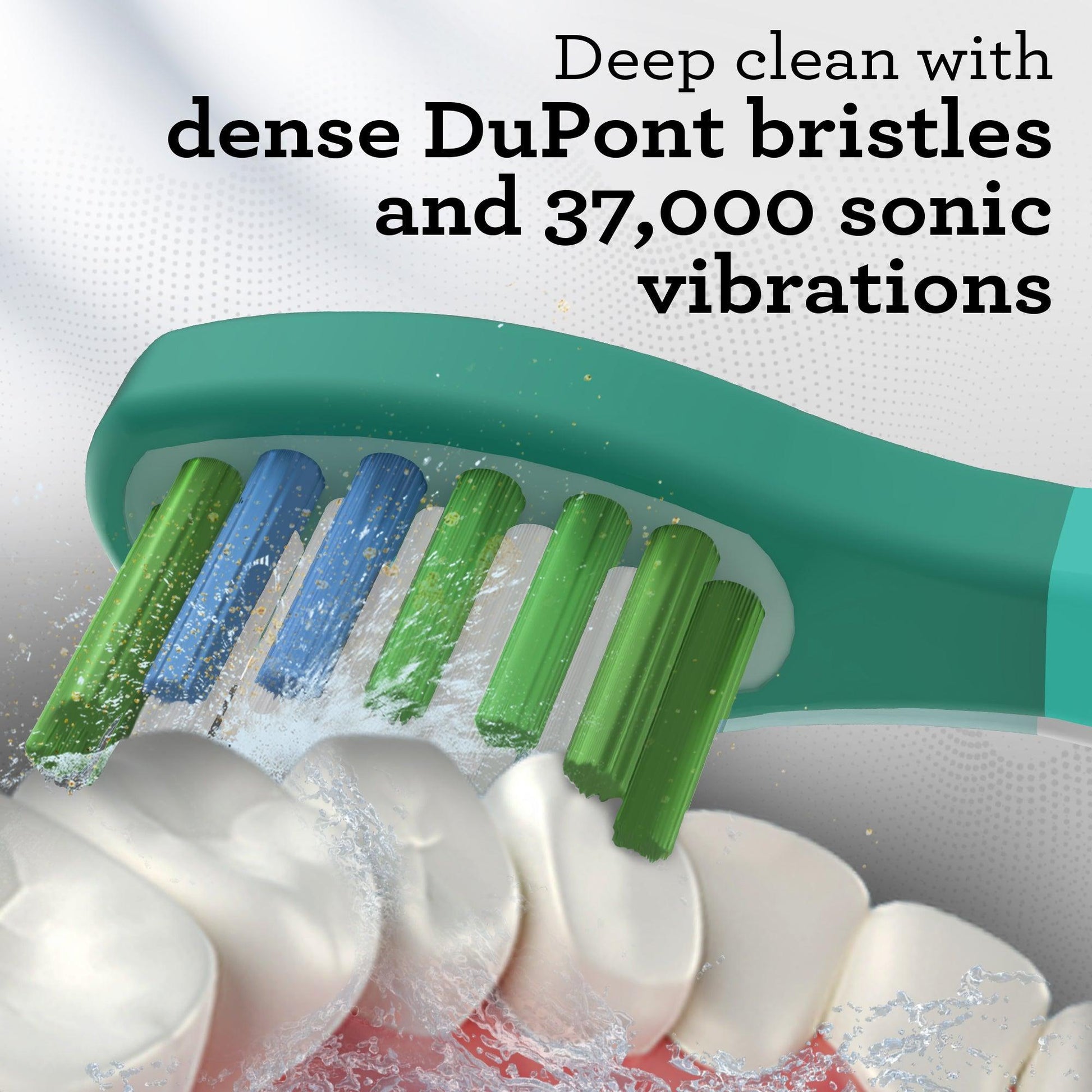 DUPONT BRISTLES: Soft-rounded Dupont bristles gently care for gums while effectively removing plaque. Fading indicator bristles signal when it's time to replace the brush head for optimal oral hygiene.