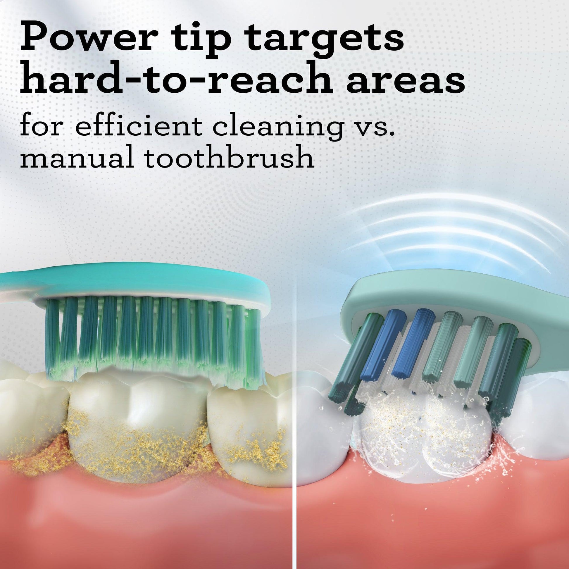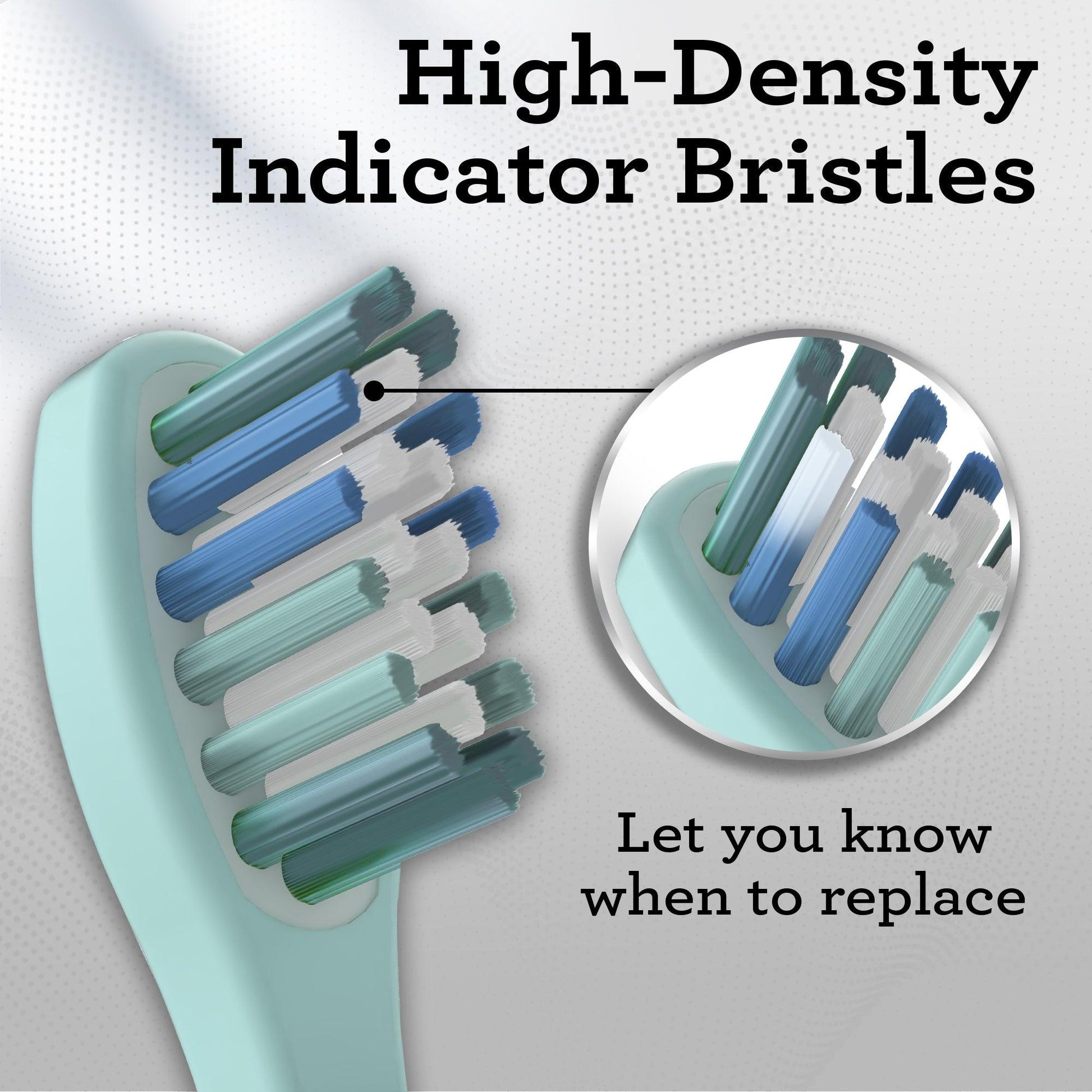 DUPONT BRISTLES: Soft-rounded Dupont bristles gently care for gums while effectively removing plaque. Fading indicator bristles signal when it's time to replace the brush head for optimal oral hygiene.