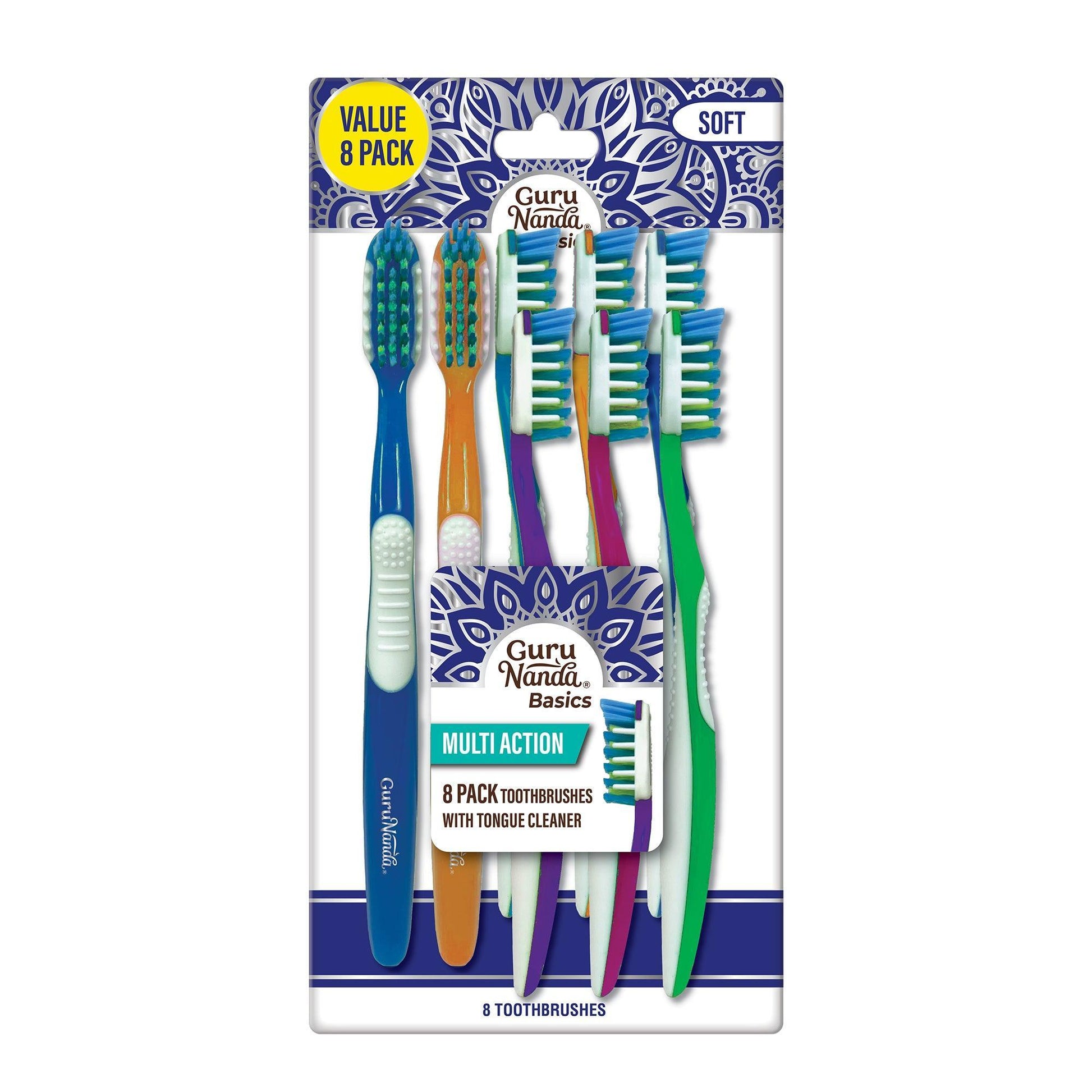 Multi-Action Toothbrush with Tongue Cleaner - Pack of 8